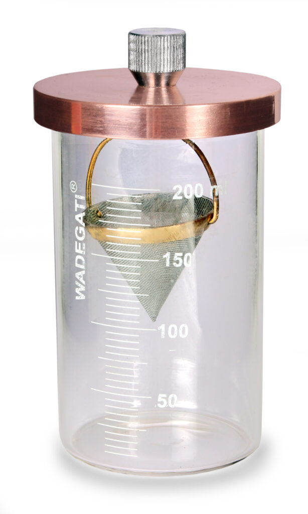 Evaluates the tendency of oil and lubricating grease to separate at an elevated temperature.Consists of 60 mesh cone with wire handle. 200ml glass beaker & cover with hook.