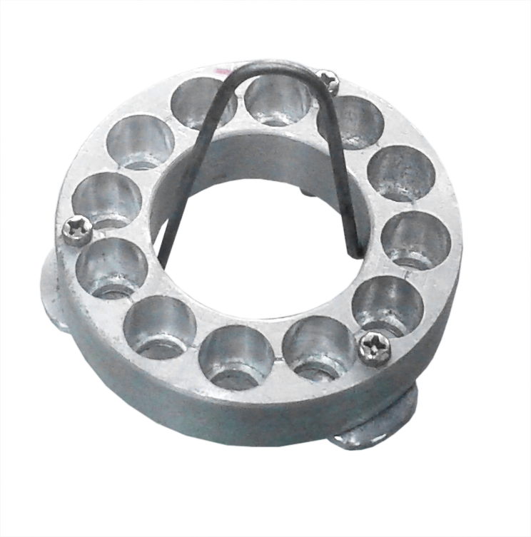 Aluminum block with 12 evenly spaced holes (13mm dia)