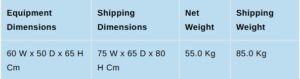 Power Supply: 230V ±10%, 1 Phase, 50 Hz