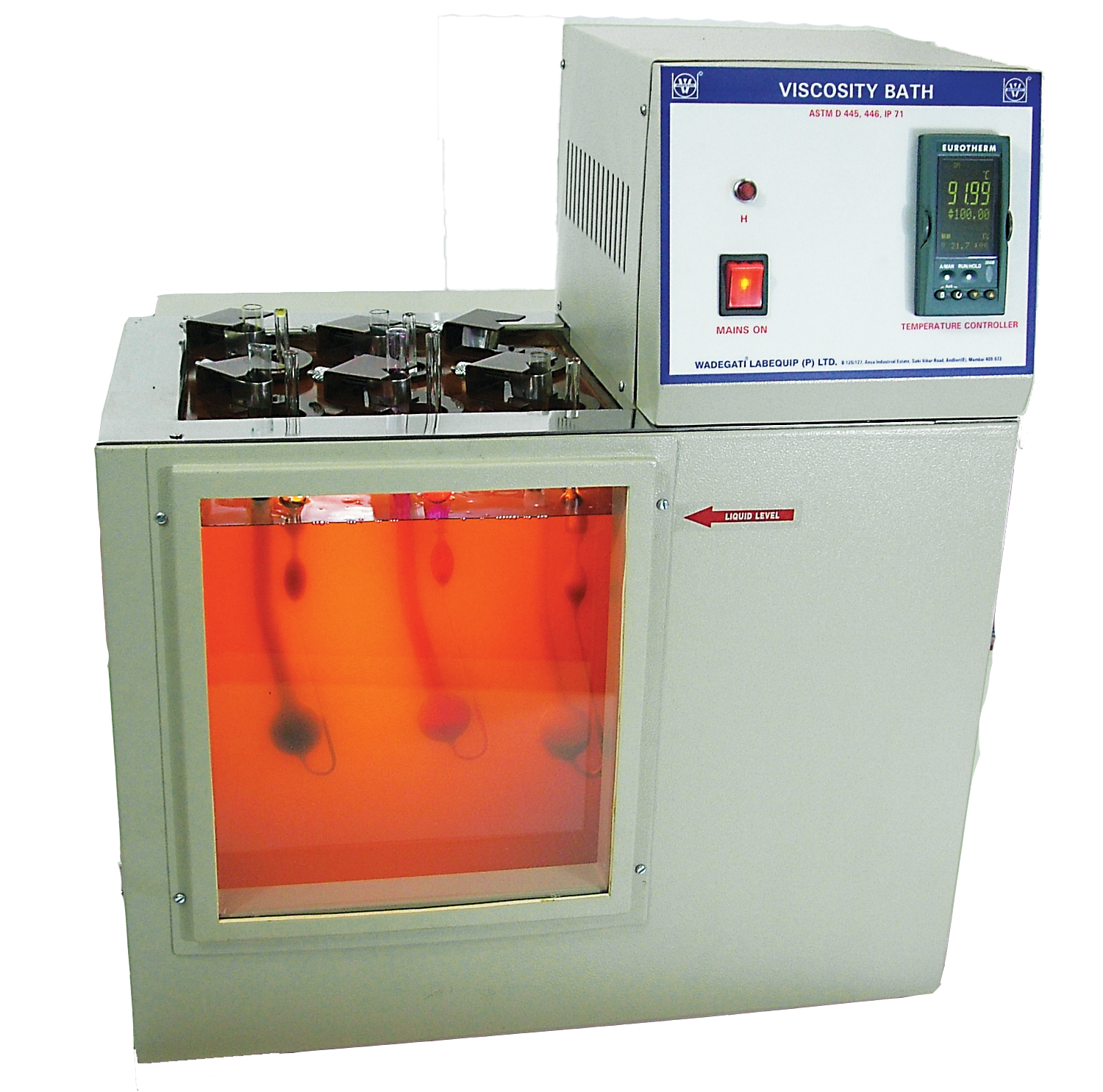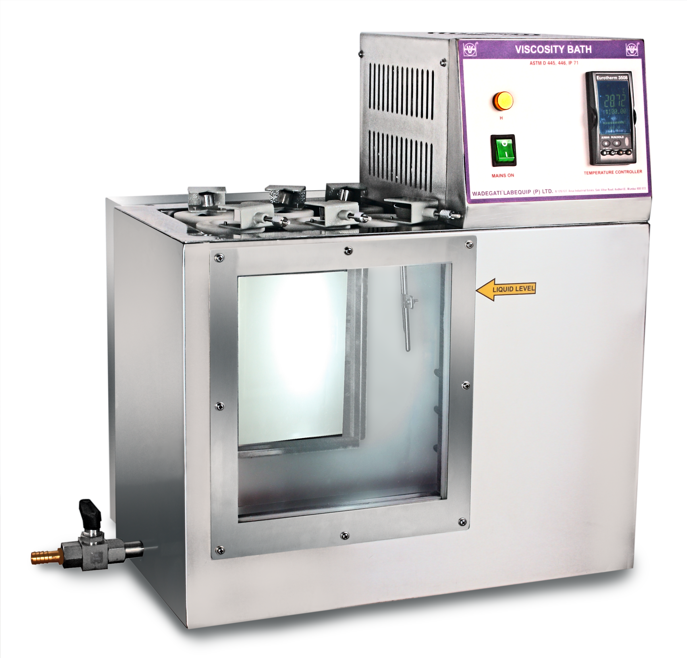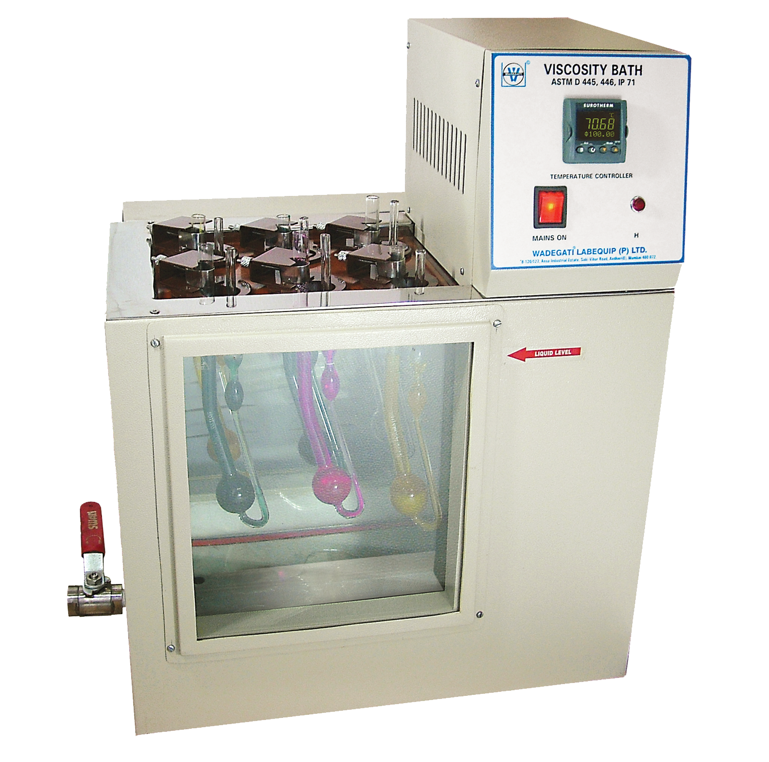 • Bath opening 254 x 200 mm with cover having 6 openings of 50 mm in diameter to hold 6 viscometers with six bakelite holders.